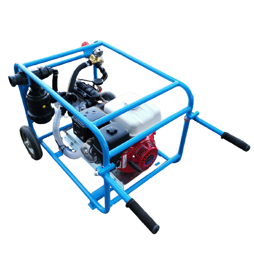 Groupe motopompe pour portage à l'eau de fibre optique. A coupler avec une machine de pose de câble de fibre optique.